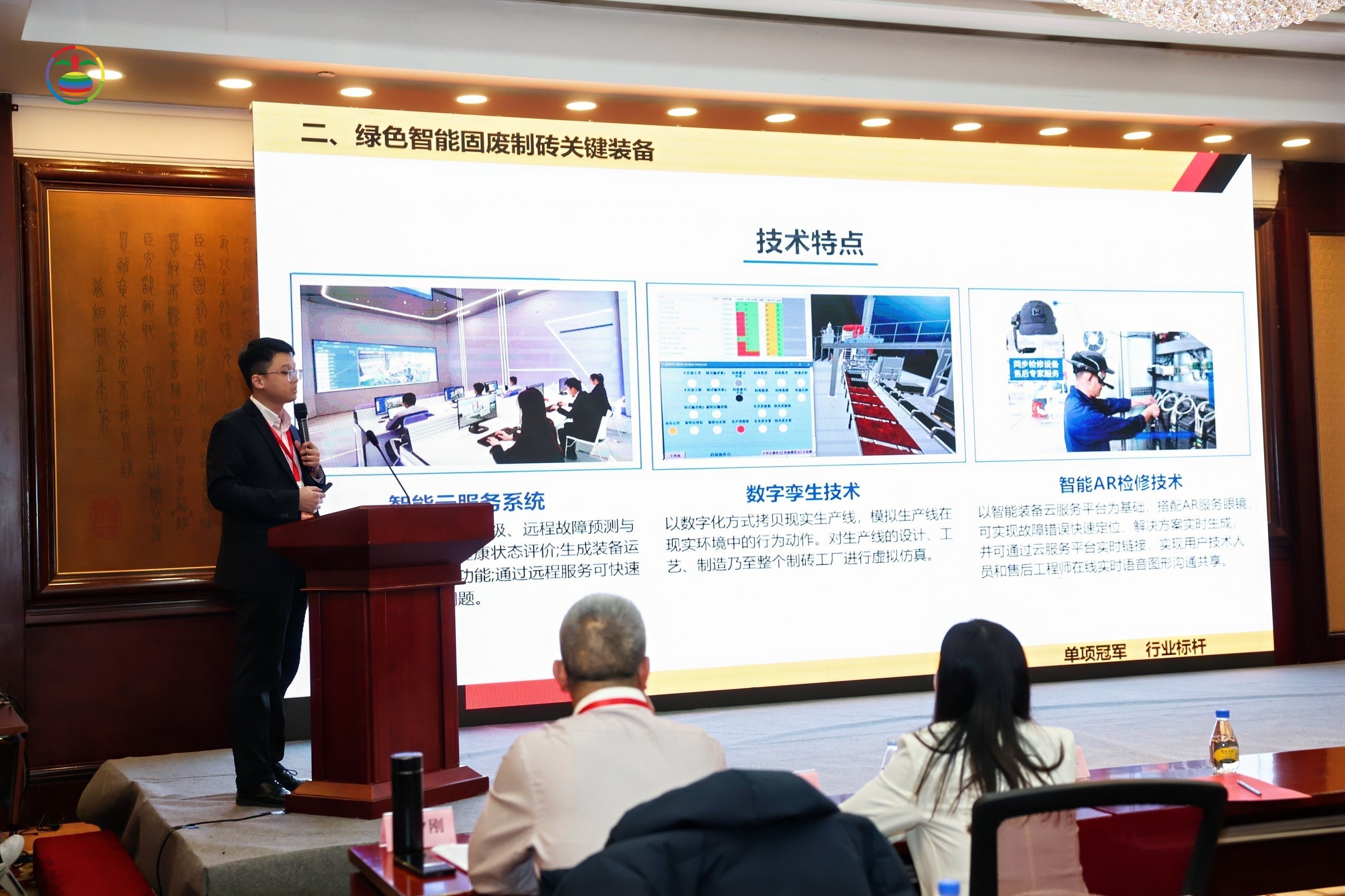 會上,泉工股份郭基榕經理帶來了題為《綠色智能固廢制磚關鍵技術》的主題報告,為與會者分享了泉工股份在固廢綜合利用領域深耕多年的經驗,指出未來我國大宗固廢仍將面臨產生強度高、利用不充分、綜合利用產品附加值低的嚴峻挑戰。新的發展形式也對大宗固廢的綜合利用提出新的要求。開展大宗固廢綜合利用對節約和替代原生資源、有效減少碳排放等具有顯著的協同效應,是實現碳達峰碳中和目標的重要途徑之一。
