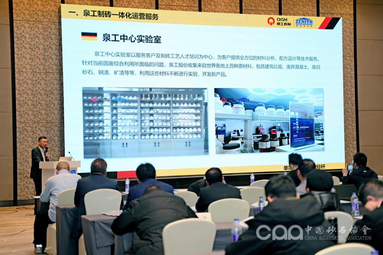 會上,泉工股份副總經理傅國華受邀作題為《混凝土砌塊裝備技術解決方案的研究與應用》的報告,報告中表示泉工股份致力于成為全球制磚一體化解決方案運營商,將綠色智能化裝備做優做強,積極打造科技含量高、經濟附加值高的綠色智能裝備產業鏈。通過干法振壓成型或濕法制磚工藝,為客戶提供定制化制磚解決方案。