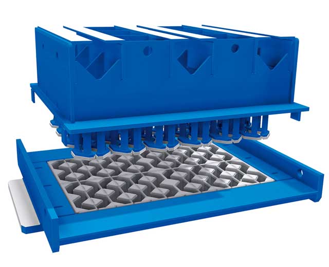 泉工股份植草磚機模具采用低碳合金高強度滲碳鋼,配合間隙0.5-0.6mm,懸掛板采用進口耐磨高強度結構鋼,持久耐用不易磨損。模芯采用線切割工藝,具備精確垂直的彎角和光滑的側壁,兼具美觀和實用。